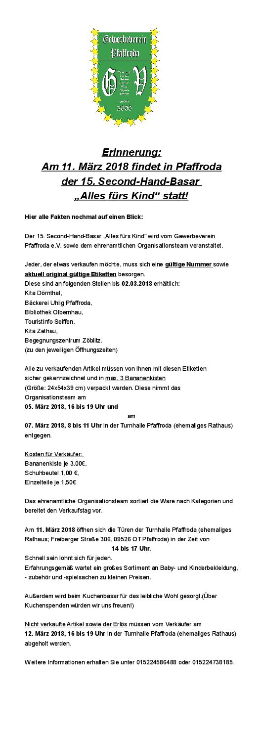 12.03.2018 nach dem Basar, späteste Abholung nicht verkaufter Artikel