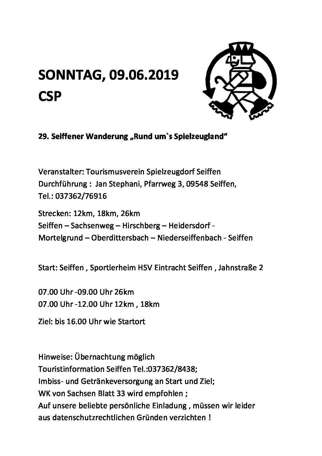 "Rund um`s Spielzeugland" Pfingstwanderung; Sportlerheim Seiffen