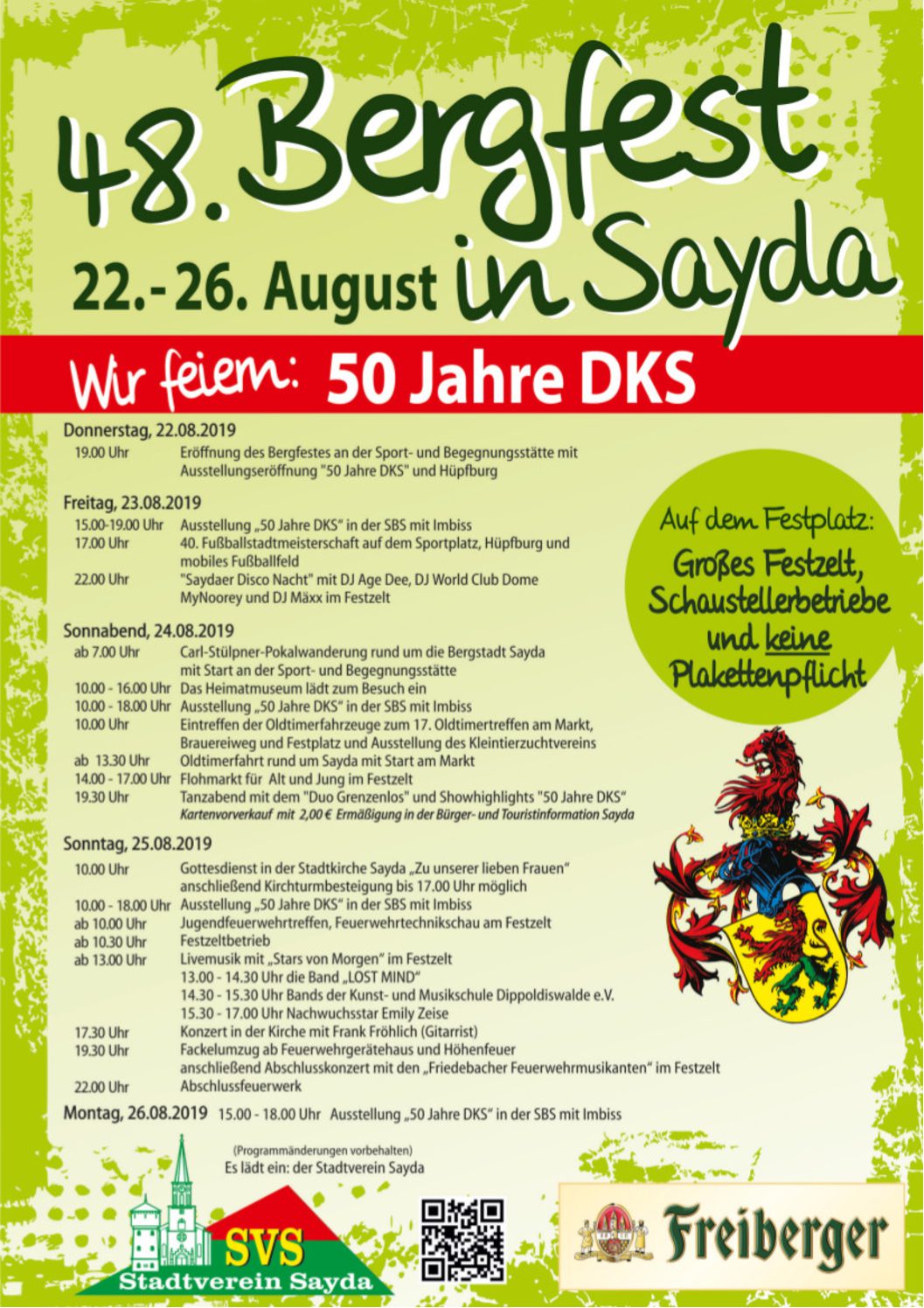 Herzliche Einladung zum 48. Bergfest nach Sayda, Veranstaltungsflyer siehe PDF-Datei hier.