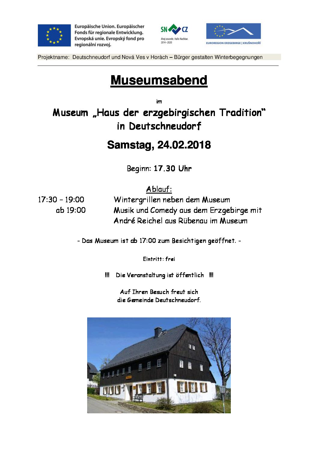 ab 19:00 Uhr Musik und Comedy aus dem Erzgebirge mit André Reichel aus Rübenau (im Museum)