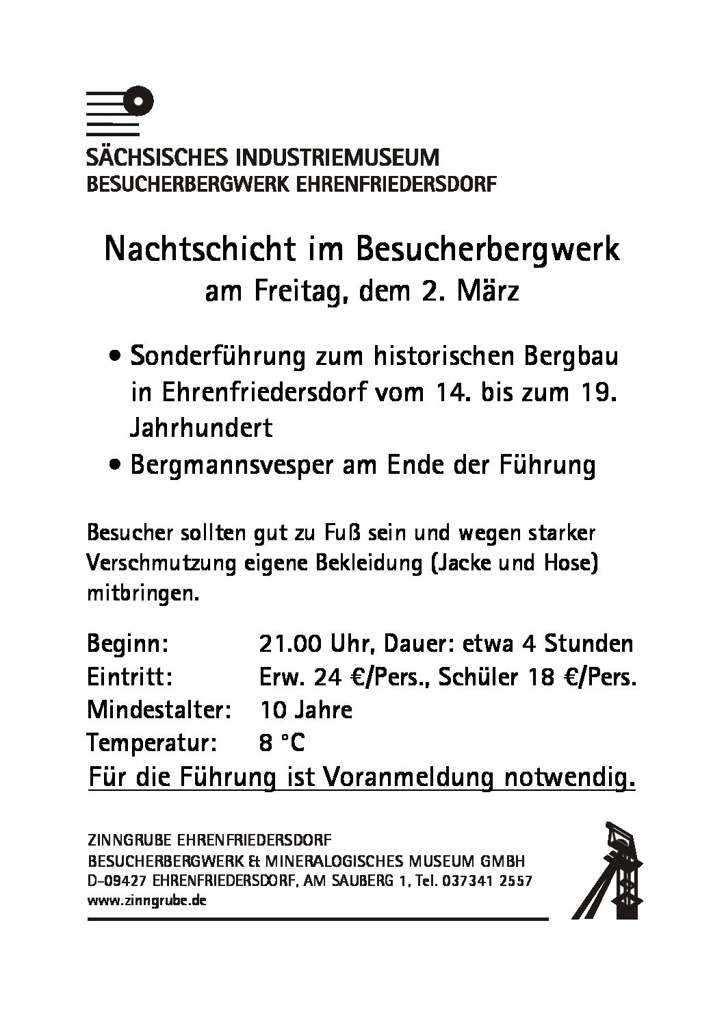 Herzliche Einladung zur Nachtschicht Sonderführung im historischen Bergwerk mit anschließender Bergmannsvesper!